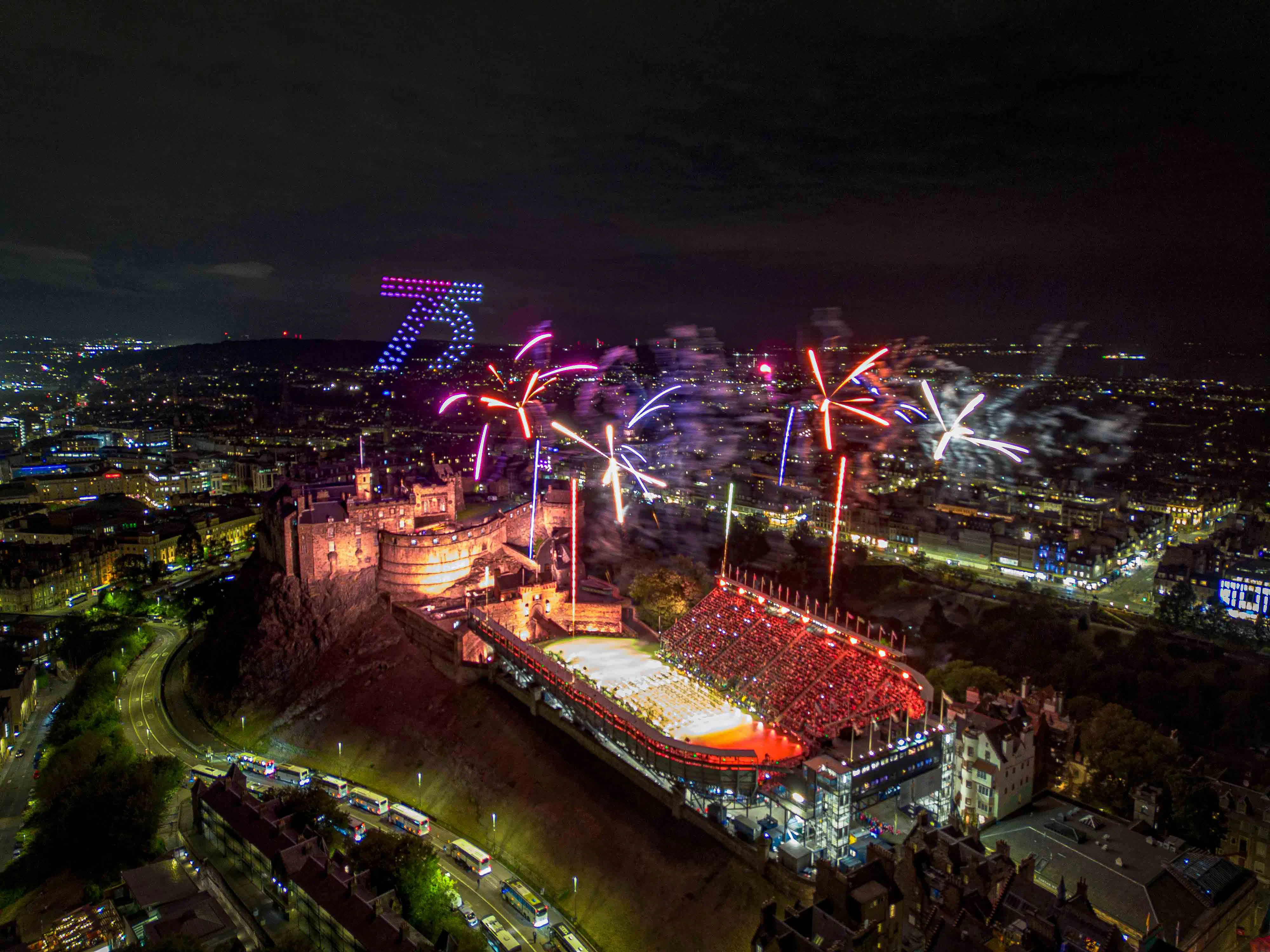 Due to spatial limits at Edinburgh Castle, the show used just 100 drones, with visuals designed to maximize clarity and impact for the audience.