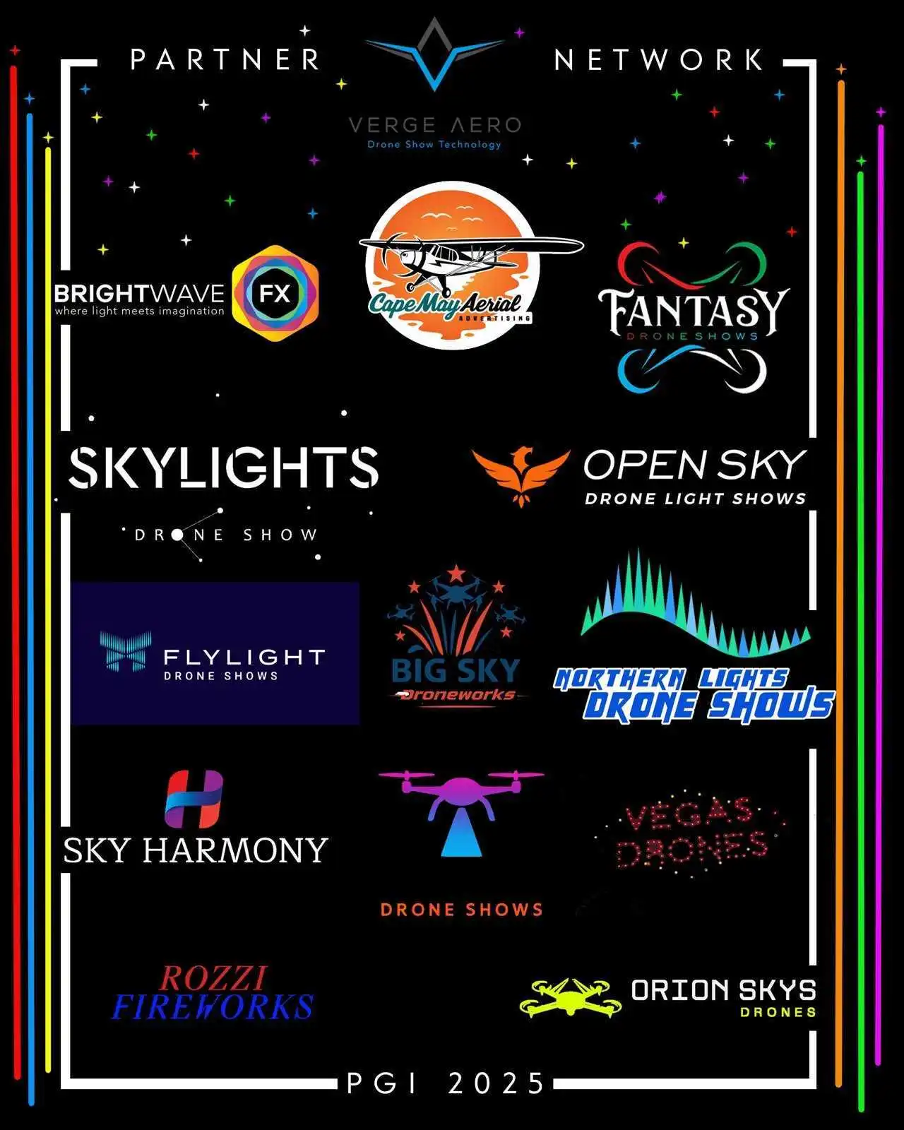 - Over a dozen show provider companies in Verge Aeroās partner network provided drones and on-site assistance.